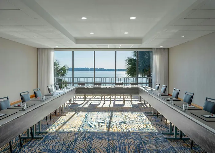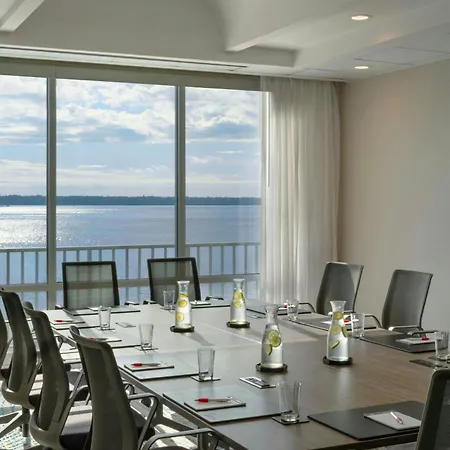 Clearwater Beach Marriott Resort On Sand Key is a waterfront resort featuring an aquatic playground and a lagoon pool with a waterfall. Guest accommodations come with a seating area, small refrigerator, and private balcony views of Clearwater Bay. The resort has several dining options, including Watercolour Grillhouse and the poolside Kokomo's Bar & Grille. Conveniently located near Coachman Park, guests can easily access local attractions for outdoor events. This family-friendly venue also offers amenities like a spa and fitness center.